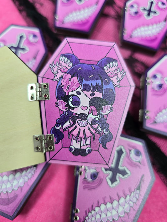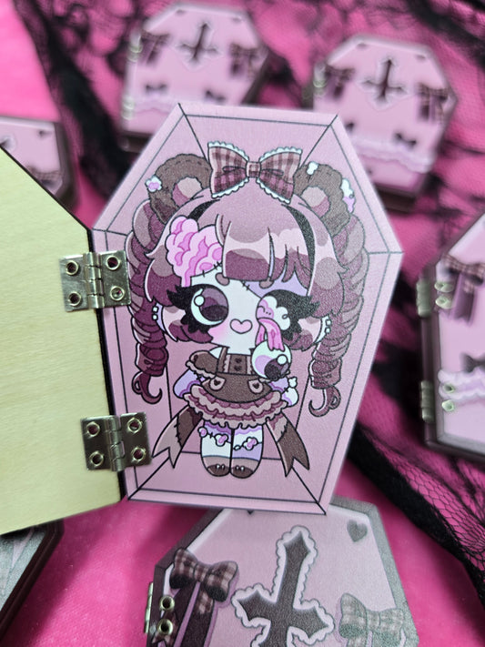ZOMBABIES - STUFFED BEAR WOODEN COFFIN PIN