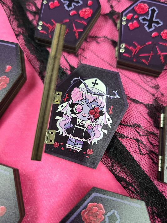 ZOMBABIES - ZOMBIE NUN WOODEN COFFIN PIN