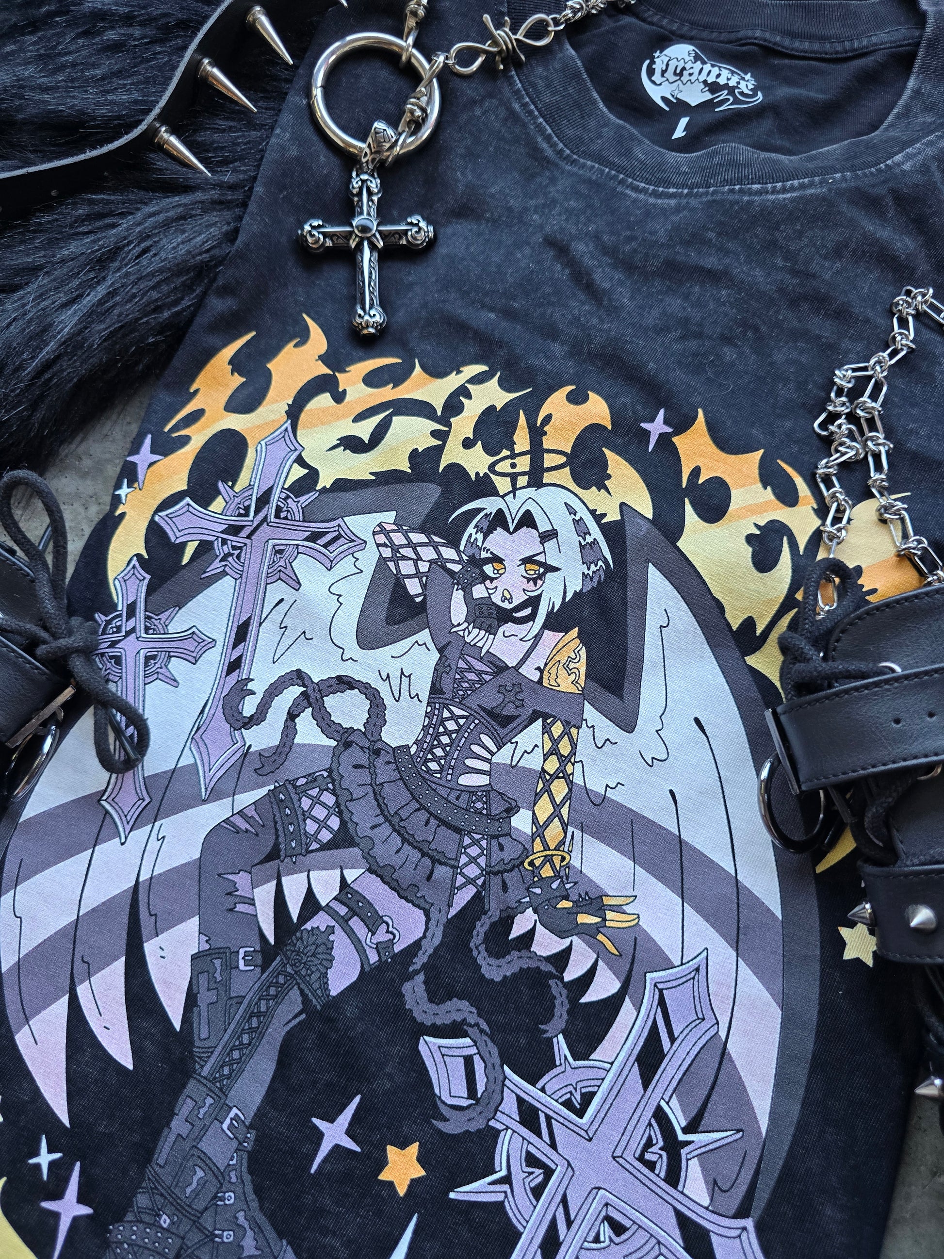 Hell Is 4Ever Acid Wash Tee featuring (GOTH) Lute from Hazbin Hotel >:0