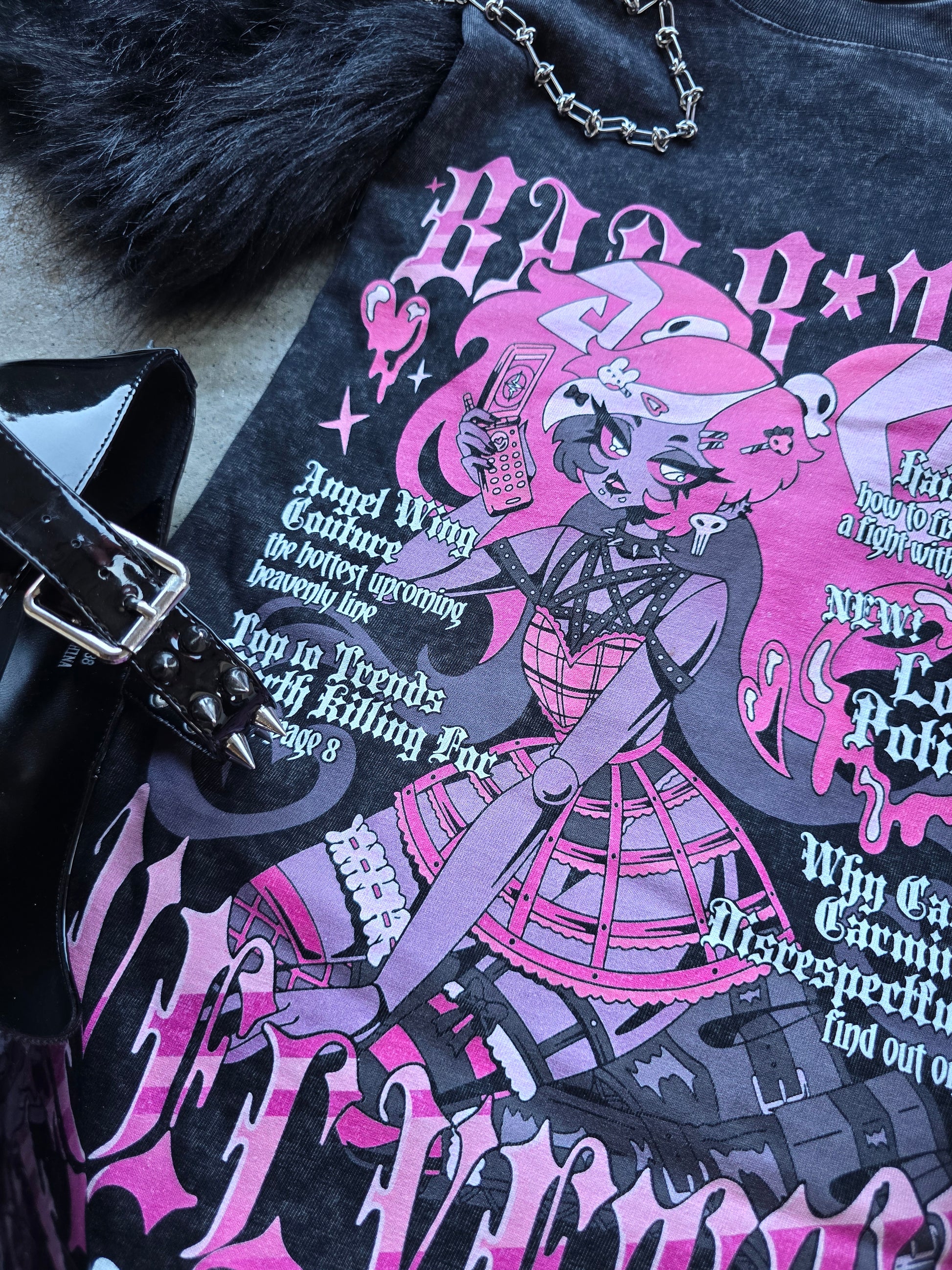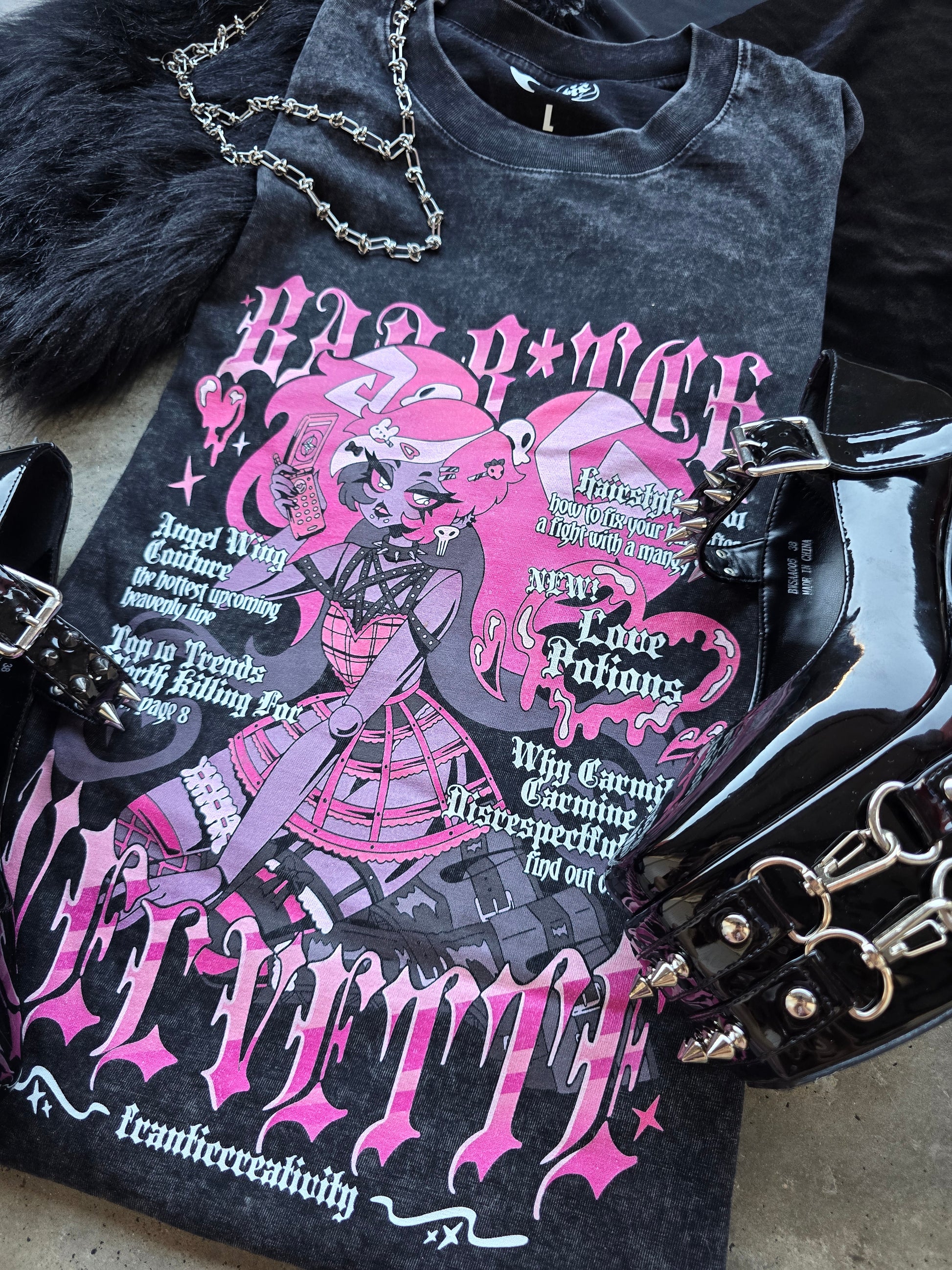Fashion Mag Acid Wash Tee featuring Velvette from Hazbin Hotel